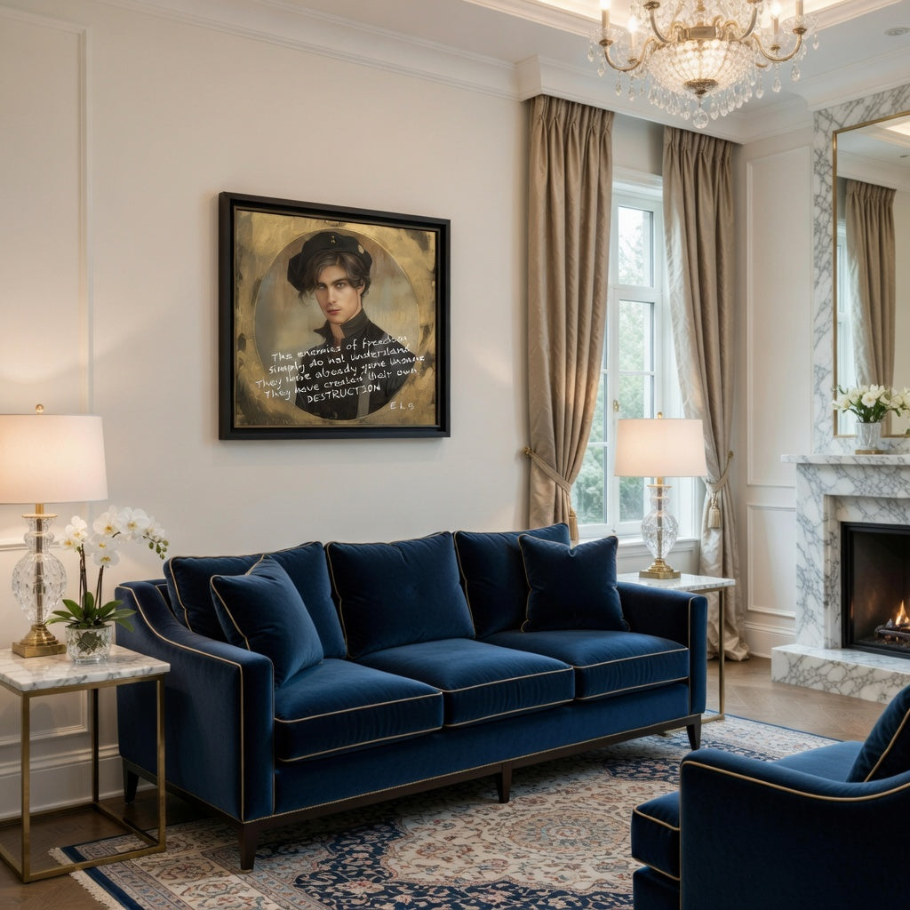 In the gilded haze of a forgotten revolution, where shadows wore berets emblazoned with the insignia of inner fire, stood Eli. A young visionary whose gaze pierced the veil of tyranny. The enemies of freedom, he knew, were not born of malice alone but of a madness they had sown in their own hearts. Seeds of destruction blooming in silent gardens of self-deceit. With each brushstroke of defiance. Eli wove his poem into existence: a portrait of resilience, eyes fierce yet forgiving, reminding the world that true liberty rises not from battle. From the quiet alchemy of understanding. In his creation, hope ignited. An inspiring flame whispering that even the darkest oppressors carry the spark of their own undoing, urging all souls to embrace grace and forge paths of eternal light.
